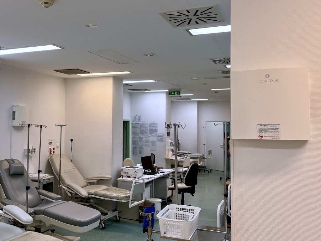 A kórházban 7 db Novaerus NV800-as készülék lát el fertőzésmegelőzési feladatokat az Anaesthesiológiai és Intenzív Terápiás Osztály kórtermeiben, ahol ágyanként 1-1 db, légterelőkkel ellátott készülék került elhelyezésre.